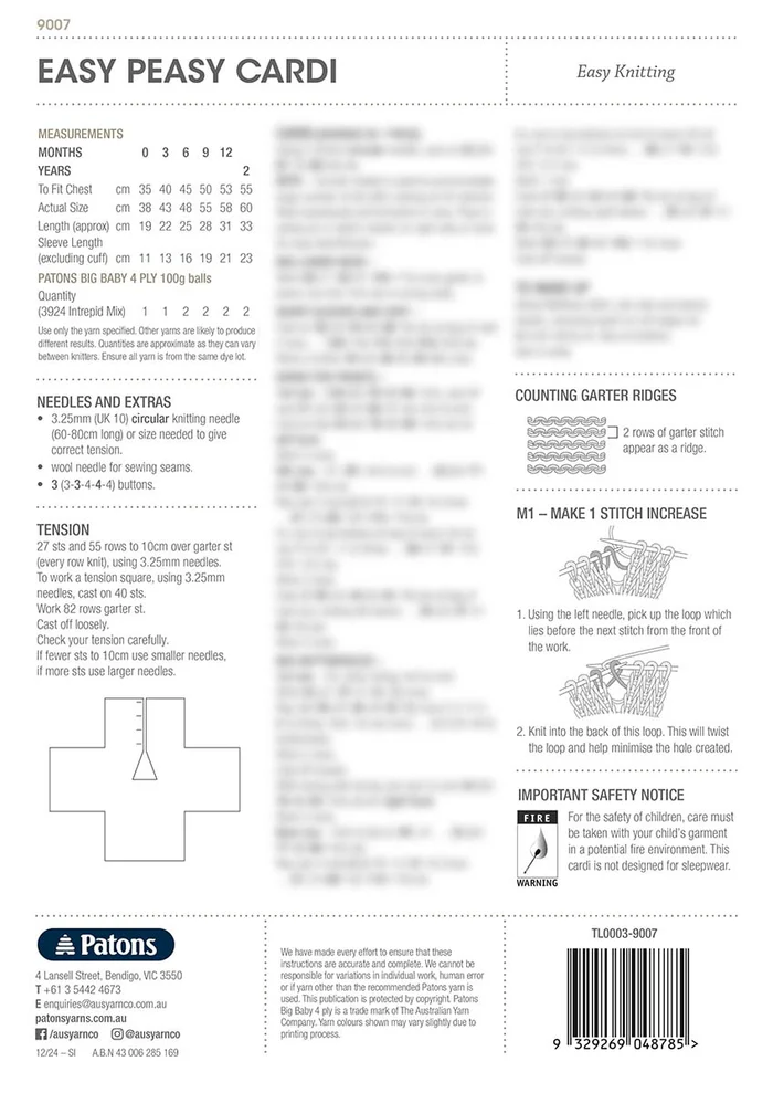 Patons Easy Peasy Cardi Pattern 9007 quantity